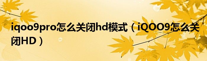 iqoo9pro怎么關閉hd模式(iQOO9怎么關閉HD)