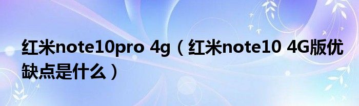 紅米note10pro 4g(紅米note10 4G版優缺點是什么)