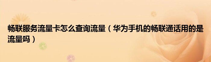 暢聯服務流量卡怎么查詢流量(華為手機的暢聯通話用的是流量嗎)