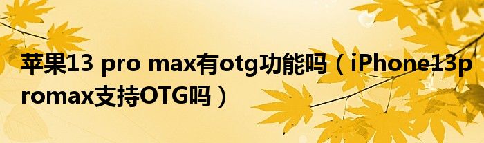 蘋果13 pro max有otg功能嗎(iPhone13promax支持OTG嗎)