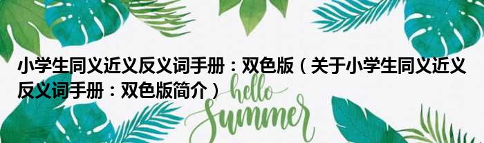 1、 《小學生同義近義反義詞手冊:雙色版》是2014年湖南少年兒童出版社出版的圖書。?