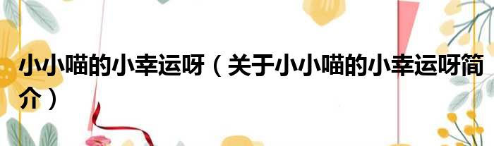 小小喵的小幸運呀(關于小小喵的小幸運呀簡介)