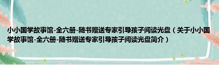 導讀 大家好,小金來為大家解答以上的問題。小小國學故事館-全六冊-隨書贈送專家引導孩子閱讀光盤,關于小小國學故事館-全六冊-隨書贈送專家引導