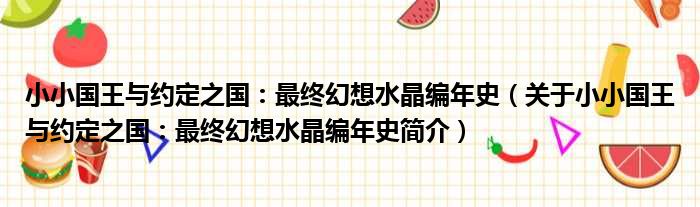 導讀 大家好,小金來為大家解答以上的問題。小小國王與約定之國:最終幻想水晶編年史,關于小小國王與約定之國:最終幻想水晶編年史簡介這個很多