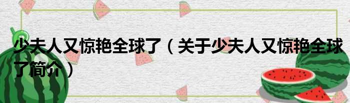 大家好,小金來為大家解答以上的問題。少夫人又驚艷全球了,關于少夫人又驚艷全球了簡介這個很多人還不知道,現在讓我們一起來看看吧!