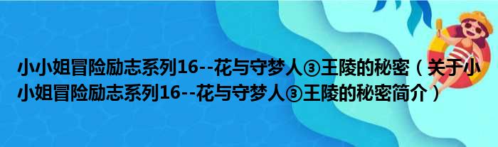 1、 《小小姐冒險勵志系列16--花與守夢人③王陵的秘密》是2017年吉林攝影社出版的圖書。