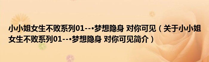 小小姐女生不敗系列01--·夢想隱身 對你可見(關于小小姐女生不敗系列01--·夢想隱身 對你可見簡介)
