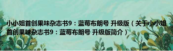 小小姐首創果味雜志書9:藍莓布朗號 升級版(關于小小姐首創果味雜志書9:藍莓布朗號 升級版簡介)