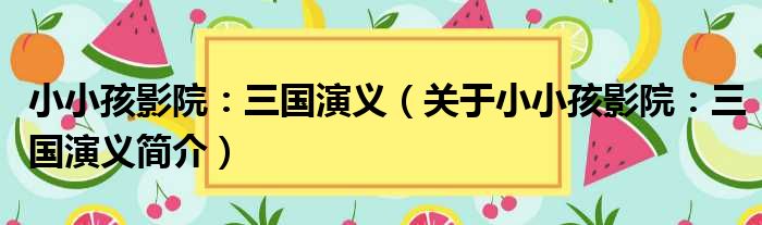 小小孩影院:三國演義(關于小小孩影院:三國演義簡介)