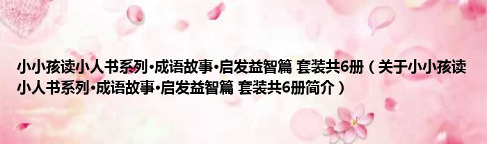 導讀 大家好,小金來為大家解答以上的問題。小小孩讀小人書系列·成語故事·啟發益智篇 套裝共6冊,關于小小孩讀小人書系列·成語故事·啟發益智