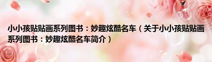 導讀 大家好,小金來為大家解答以上的問題。小小孩貼貼畫系列圖書:妙趣炫酷名車,關于小小孩貼貼畫系列圖書:妙趣炫酷名車簡介這個很多人還不知
