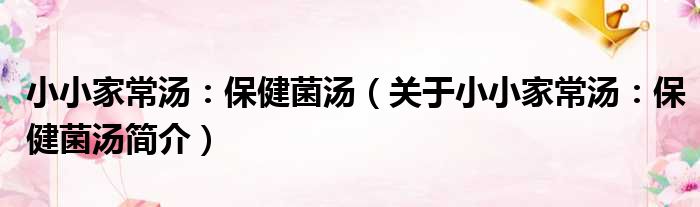 導讀 大家好,小金來為大家解答以上的問題。小小家常湯:保健菌湯,關于小小家常湯:保健菌湯簡介這個很多人還不知道,現在讓我們一起來看看吧!1