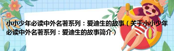 導讀 大家好,小金來為大家解答以上的問題。小小少年必讀中外名著系列:愛迪生的故事,關于小小少年必讀中外名著系列:愛迪生的故事簡介這個很多