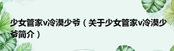 少女管家v冷漠少爺(關于少女管家v冷漠少爺簡介)