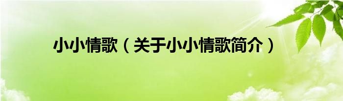 大家好,小金來為大家解答以上的問題。小小情歌,關于小小情歌簡介這個很多人還不知道,現在讓我們一起來看看吧!