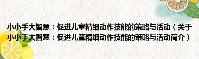 小小手大智慧:促進兒童精細動作技能的策略與活動(關于小小手大智慧:促進兒童精細動作技能的策略與活動簡介)