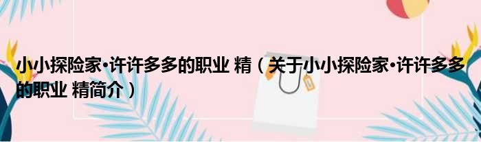 導讀 大家好,小金來為大家解答以上的問題。小小探險家·許許多多的職業 精,關于小小探險家·許許多多的職業 精簡介這個很多人還不知道,現在讓