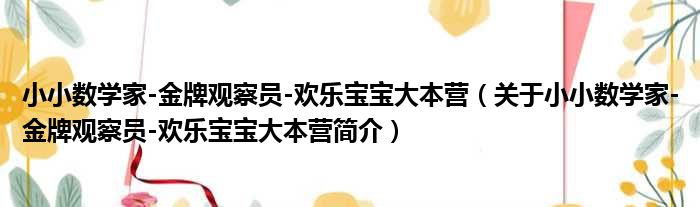 小小數學家-金牌觀察員-歡樂寶寶大本營(關于小小數學家-金牌觀察員-歡樂寶寶大本營簡介)
