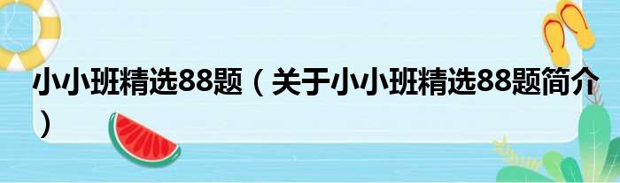 大家好,小金來為大家解答以上的問題。小小班精選88題,關于小小班精選88題簡介這個很多人還不知道,現在讓我們一起來看看吧!