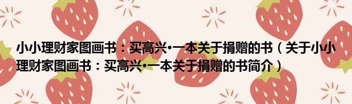 導讀 大家好,小金來為大家解答以上的問題。小小理財家圖畫書:買高興·一本關于捐贈的書,關于小小理財家圖畫書:買高興·一本關于捐贈的書簡介