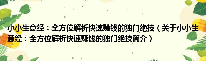小小生意經:全方位解析快速賺錢的獨門絕技(關于小小生意經:全方位解析快速賺錢的獨門絕技簡介)