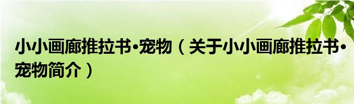 1、 《小小畫廊推拉書·寵物》是2018年哈爾濱出版社出版的圖書。