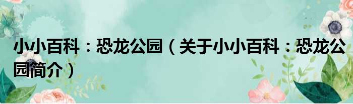 小小百科:恐龍公園(關于小小百科:恐龍公園簡介)