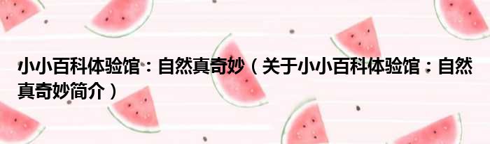 導讀 大家好,小金來為大家解答以上的問題。小小百科體驗館:自然真奇妙,關于小小百科體驗館:自然真奇妙簡介這個很多人還不知道,現在讓我們一起