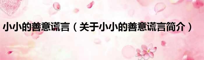導讀 大家好,小金來為大家解答以上的問題。小小的善意謊言,關于小小的善意謊言簡介這個很多人還不知道,現在讓我們一起來看看吧!1、 《小小