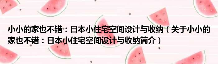 1、 《小小的家也不錯:日本小住宅空間設計與收納》是化學工業出版社出版的圖書。