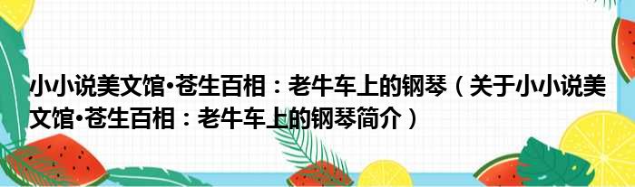 小小說美文館·蒼生百相:老牛車上的鋼琴(關于小小說美文館·蒼生百相:老牛車上的鋼琴簡介)
