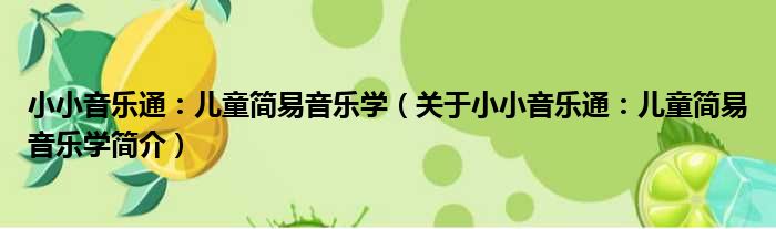 導讀 大家好,小金來為大家解答以上的問題。小小音樂通:兒童簡易音樂學,關于小小音樂通:兒童簡易音樂學簡介這個很多人還不知道,現在讓我們一起