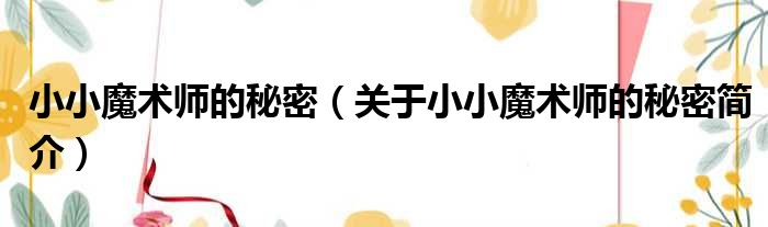 小小魔術師的秘密(關于小小魔術師的秘密簡介)