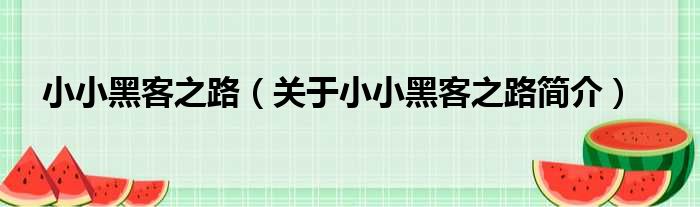 導讀 大家好,小金來為大家解答以上的問題。小小黑客之路,關于小小黑客之路簡介這個很多人還不知道,現在讓我們一起來看看吧!1、 《小小黑客