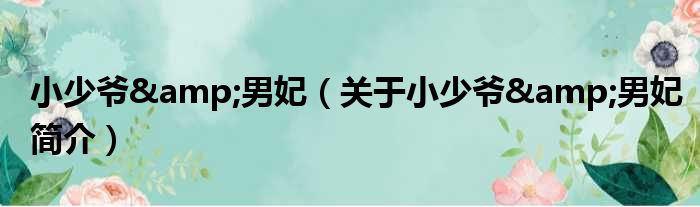 導讀 大家好,小金來為大家解答以上的問題。小少爺&男妃,關于小少爺&男妃簡介這個很多人還不知道,現在讓我們一起來看看吧!1、 《小少爺&男妃