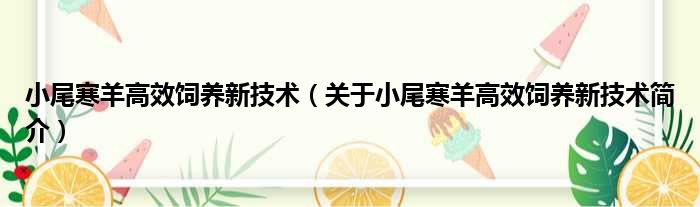 小尾寒羊高效飼養新技術(關于小尾寒羊高效飼養新技術簡介)