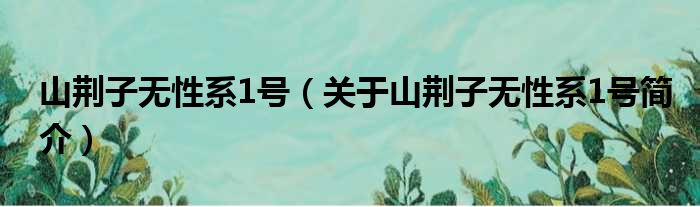 山荊子無性系1號(關于山荊子無性系1號簡介)