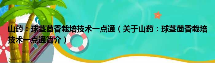 導讀 大家好,小金來為大家解答以上的問題。山藥:球莖茴香栽培技術一點通,關于山藥:球莖茴香栽培技術一點通簡介這個很多人還不知道,現在讓我們