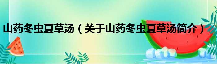 山藥冬蟲夏草湯(關于山藥冬蟲夏草湯簡介)