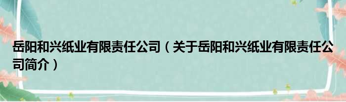 岳陽和興紙業有限責任公司(關于岳陽和興紙業有限責任公司簡介)