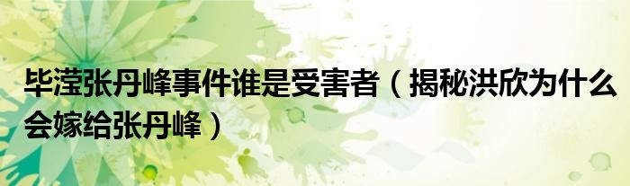 導讀 大家好,小為為大家解答以上畢瀅張丹峰事件誰是受害者,揭秘洪欣為什么會嫁給張丹峰的問題,也是到網上收集了關于畢瀅張丹峰事件誰是受害者