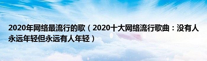 大家好,綜合小編來為大家講解下。2020年網絡最流行的歌,2020十大網絡流行歌曲:沒有人永遠年輕但永遠有人年輕很多人還不知道,現在讓我們一起來看看吧!