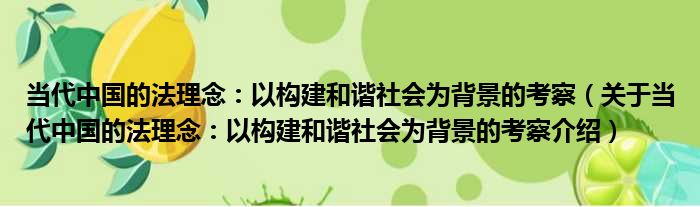 導讀 大家好,小迪來為大家解答以上的問題。當代中國的法理念:以構建和諧社會為背景的考察,關于當代中國的法理念:以構建和諧社會為背景的考察