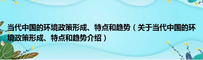 當代中國的環境政策形成、特點和趨勢(關于當代中國的環境政策形成、特點和趨勢介紹)