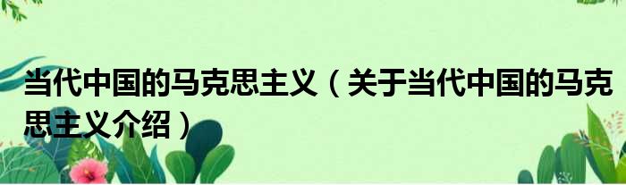 當代中國的馬克思主義(關于當代中國的馬克思主義介紹)