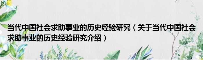 當代中國社會求助事業的歷史經驗研究(關于當代中國社會求助事業的歷史經驗研究介紹)