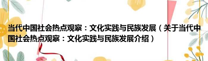 當代中國社會熱點觀察:文化實踐與民族發展(關于當代中國社會熱點觀察:文化實踐與民族發展介紹)