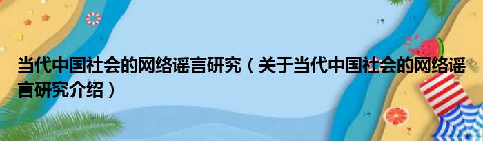 當代中國社會的網絡謠言研究(關于當代中國社會的網絡謠言研究介紹)