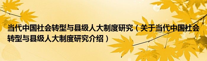 導讀 大家好,小迪來為大家解答以上的問題。當代中國社會轉型與縣級人大制度研究,關于當代中國社會轉型與縣級人大制度研究介紹這個很多人還不知