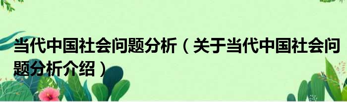 當代中國社會問題分析(關于當代中國社會問題分析介紹)